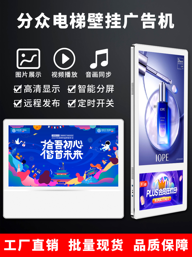 電梯作為載人工具,每次上下都伴隨著不同的人群。狹窄的空間也讓說話的欲望變的很少,自然而然大家的注意力都到了可以播放視頻和圖片的廣告機上面,樓宇電梯廣告機安裝在電梯轎廂內使用,產品采用網絡傳輸,遠程控制管理發布,播放環境屬于公共環境,主要的目的通過大眾人流進出電梯展示廣告內容,所以產品需要考慮設備使用時的便捷性,產品的安全性。例如:表面的鋼化玻璃必須達到3mm以上的全鋼化玻璃,這樣即使出破碎也是成顆粒形狀破碎。電源線需采用12V適配器電源,杜絕220V直接供電。主要電路均需從頂部出,以免人群不小心觸碰到。