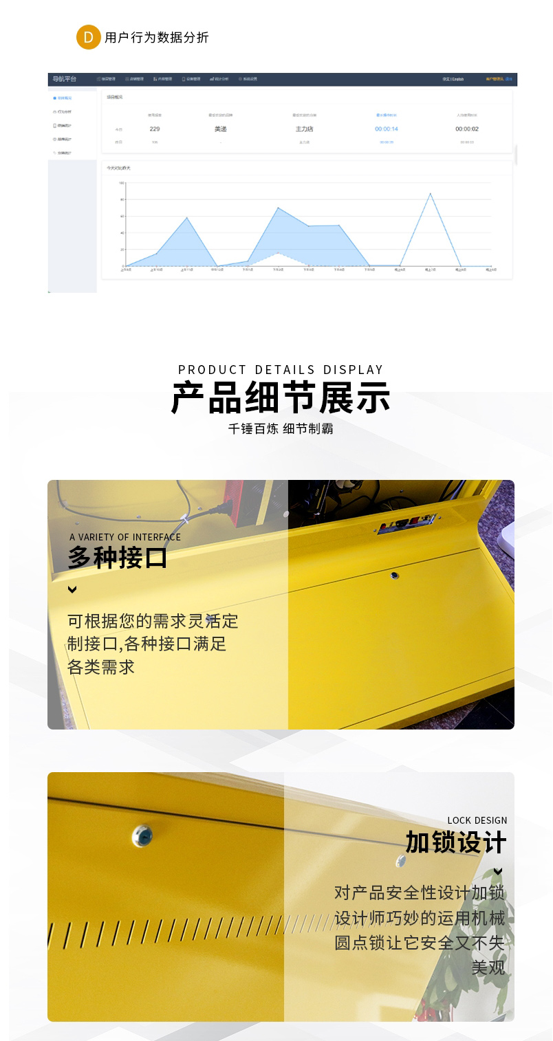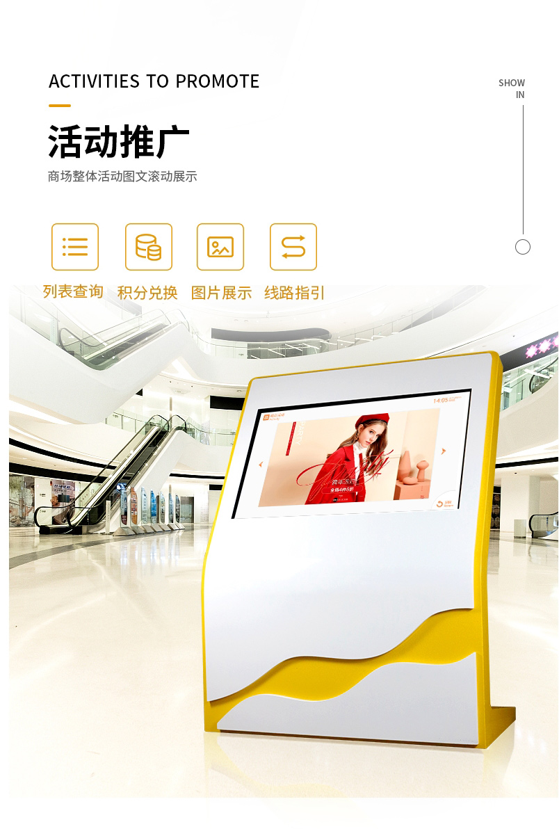 觸摸導覽屏支持商家進行廣告活動投放展示,微信小程序可實時推送商鋪活動信息,用戶可一鍵導航至商鋪位置。系統支持對接商場會員系統,實現會員系統與導航應用的數據聯通互動。