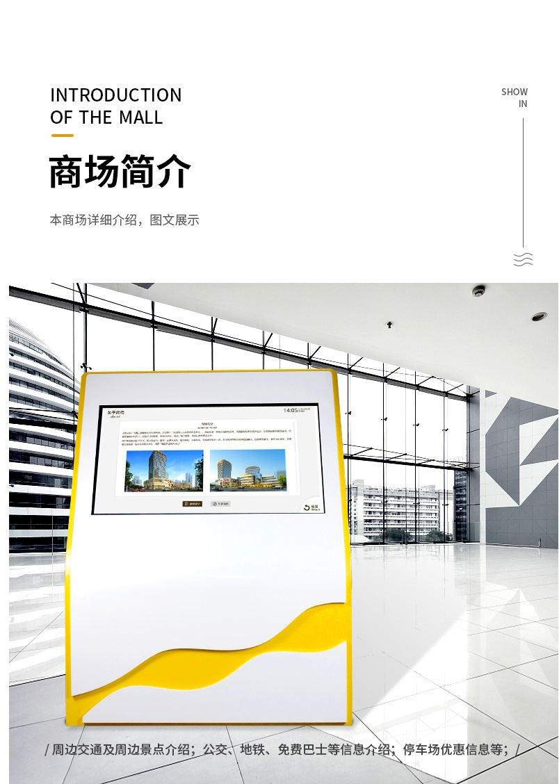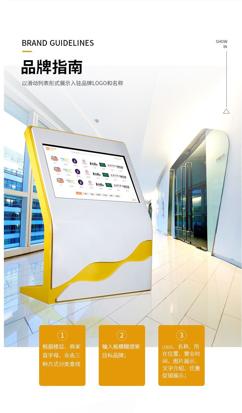 顧客可在智能觸控導視屏上,通過搜索查詢或點擊地圖名稱,獲取商鋪導航路線,系統支持跨樓層、跨樓宇導航。