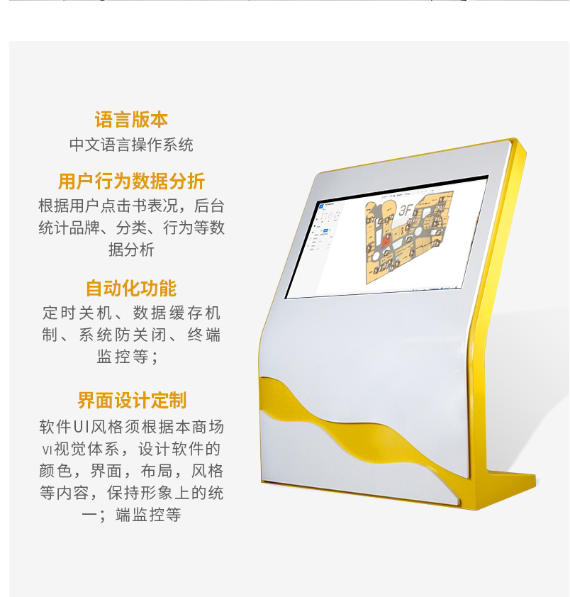 商場導覽系統將商場樓層分布圖以樓層疊加形式展示,選擇樓層地圖可查看所在樓層所有商鋪、基礎設施的位置、logo圖標、信息介紹以及實時活動。